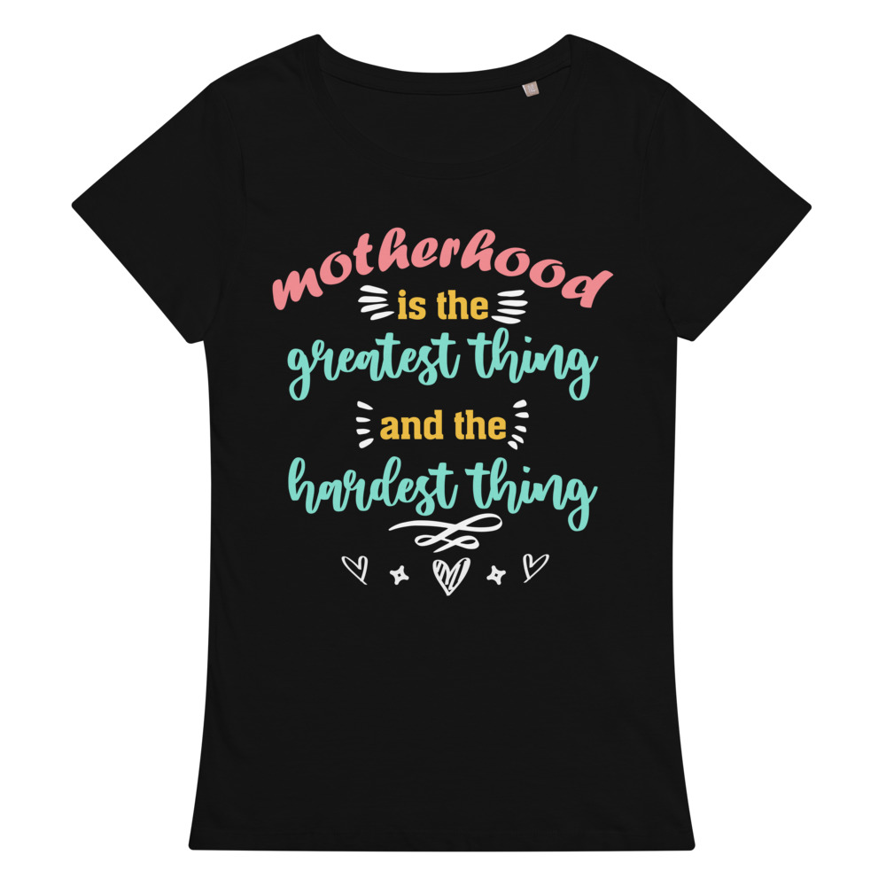 Motherhood is the greatest and the hardest thing! Gift this comfortable, casual, and organic t-shirt to your mother, it will quickly become her comfort tee for those hard days.